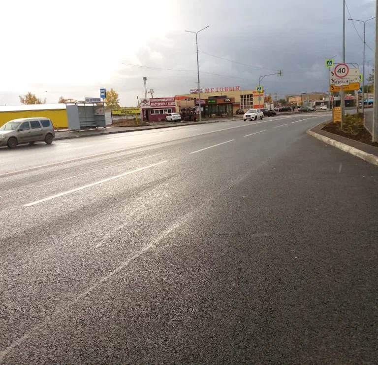 ■ Асфальтирование: Двухслойное покрытие верхним слоем из щебеночно-мастичного асфальтобетона (ЩМА-20) толщиной 5 см, что гарантирует долговечность и устойчивость к нагрузкам до 11,5 тонн на ось.